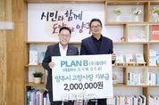(원투원뉴스) ㈜플랜비가 5일 오전 양주시에 지역 발전을 위해 고향사랑기부금 200만 원을 전달했다. 전달식에는 강수현 양주시장과 ㈜플랜비 김지혜, 김진성 대표이사가 참석했으며, 기부금은 사회적 취약계층 지원, 문화‧예술‧보건 증진, 지역공동체 활성화 등 양주시민의 삶의 질 향상을 위한 다양한 복리사업에 사용될 예정이다. 김진성 ㈜플랜비 대표이사는 “관내 기업으로서 양주시의 고향사랑기부제에 동참하게 되어 뜻깊다”며 “이번 기부가 지역사회 발전에 작은 보탬이 되길 바란다”고 전했다. 강수현 양주시장은 “어려운 경제 여건 속에서도 지역사랑을 실천해 주신 ㈜플랜비 김진성 대표이사께 깊이 감사드린다”며 “이번 기부가 고향사랑기부제에 대한 시민들의 관심을 높이는 계기가 되길 기대한다”고 말했다. 고향사랑기부제는 개인이 지방자치단체에 기부하면 10만 원까지는 전액, 초과 금액은 16.5%의 세액공제를 받을 수 있으며, 기부액의 30% 상당을 답례품으로 제공받을 수 있는 제도다.