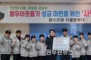(원투원뉴스) 파주시 금촌3동 팜스프링 자율방범대가 2026년 설 명절을 앞두고 관내 어려운 이웃을 위한 따뜻한 나눔을 실천했다. 팜스프링 자율방범대는 지난 1월 30일 금촌3동 행정복지센터를 방문해 현금 100만 원을 전달했다. 이번 기탁금은 자율방범대원들이 직접 발로 뛰며 진행한 ‘사랑의 김 판매’수익금으로 마련되어 그 의미를 더했다. 올해로 설립 20주년을 맞이한 팜스프링 자율방범대는 지난 2006년 주민들이 자발적으로 조직한 봉사 단체다. 현재 12명의 대원이 활동 중이며, 매일 저녁 21시 이후 팜스프링 아파트 일대를 순찰하며 범죄 예방과 청소년 선도, 경찰 협력 활동 등 지역사회 안전망 구축에 앞장서고 있다. 원남기 금촌3동 팜스프링 자율방범대장은 “설 명절을 맞아 대원들이 정성으로 마련한 수익금이 소외된 어르신들에게 작은 보탬이 되길 바란다”라며, “앞으로도 본연의 순찰 업무는 물론, 주민 모두가 행복하고 안전한 마을을 만드는 데 최선을 다하겠다”라고 소감을 밝혔다. 전종고 금촌3동장은 "20년이라는 긴 시간 동안 지역 안전을 위해 헌신해 오신 노고에 감사드린다”라며, “따뜻한 정성이