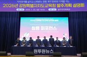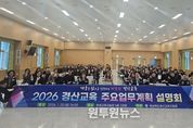 (원투원뉴스) 경상북도경산교육지원청은 1월 23일 14:00학생교육지원관 2강당에서 학부모 단체 대표자, 관내 교(원)장 등 100여명을 대상으로 '2026 경산교육계획 설명회'를 개최했다. 경산교육지원청 청소년합창단 공연으로 시작한 이번 설명회는 2026 경산교육의 새로운 비전과 특색교육을 소개했으며 2025년 교육활동 성과와 유·초·중학교의 교육과정 운영 사례 발표를 통해 2026 경산교육 계획을 공유하고 학교 교육과정에 반영할 의지를 갖는 시간을 가졌다. 경산교육지원청은‘배움을 삶으로 실천하는 따뜻한 경산교육’을 비전으로 ✪배움을 실천하는 교육과정 ✪꿈을 키우는 신나는 미래교육 ✪희망과 믿음으로 성장하는 학교 ✪혁신하는 교육 지원 총 4가지를 2026 경산교육 중요 추진 시책으로 설정했다. 2026년 경산교육 중요 추진 시책 실현을 위해 16개의 구체적인 실행 과제를 제시했으며, 지역적 특색을 반영한 2개의 특색사업으로‘독서·인문학으로 실천하는 '삼성현 나들길'’과 ‘배움이 성장으로 이어지는 '질문이 있는 교실'’을 선정하여 미래 역량을 함양하고 바른 인성을 갖춘 세계 인재를 육성하겠다는 의지를 담았다.