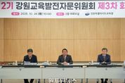 (원투원뉴스) 강원특별자치도교육청은 28일 도교육청 대회의실에서 ‘제12기 강원교육발전자문위원회 제3차 회의’를 열고 2026년 도교육청 주요업무계획을 함께 논의했다. 이번 회의에서는 △2026 강원학생성장진단평가 △인공지능 교수학습 플랫폼 ‘강원아이로(AI-ro)’ △강원특별자치도형 마이스터고 신설 △강원농어촌유학 △교육발전특구 등 2026년 강원교육 핵심 정책을 중심으로 다양한 안건에 관해 의견을 나눴다. 신경호 교육감은 “마음껏 펼치는 강원교육을 위해 달려온 지난 4년 간의 성과를 바탕으로 더 나은 강원교육을 완성해 나갈 수 있도록 깊이 있고 폭넓은 자문과 조언을 해주실 것을 당부한다”라고 말했다.