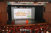(원투원뉴스) 경상북도성주교육지원청 학교지원센터는 2025년 12월 11일'지역-학교-마을을 이어 함께 미래교육으로 나아가다'라는 주제로 관내 초·중학교 교사 40여명을 대상으로‘2026 성주미래교육지구 학교 대상 사전 설명회’를 실시했다. 성주미래교육지구는 2026. 1. 1. ~ 2029. 12. 31.동안 4년간 운영되며, 주요 사업 4가지 사업 분야에 대한 비전 제시 및 상세 계획을 안내함으로써 학교 현장의 공감대를 형성하고 협력 기반 마련 및 사전 준비에 만전을 기하고자 사전 홍보의 일환으로 설명회를 실시했다. 설명회에는 관내 초·중학교 교사들이 참여했고 비전 공유 및 세부 사업 개요 전반에 관해 중점적으로 안내했으며, 학령인구 감소 및 인구 급감 시대에 급변하는 교육 환경에 발맞추어 적극적 소통과 협력으로 미래교육의 패러다임 전환을 선도해 나가자는데 의견을 같이했다. 성주교육지원청 김시용 교육장은“급변하는 국제 정세 및 사회 변화 속도에 따라 교육 환경 또한 빠르게 변화되고 있는 시점에 성주미래교육지구로 새롭게 지정되어 운영됨에 따라 학교교육과정의 많은 변화에 대비함은 물론 지역 및 마을과 학교가 다