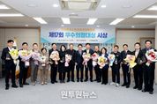 (원투원뉴스) 전라남도의회는 12월 16일 도의회 회의실에서 대한민국시도의회의장협의회가 주관한 ‘제17회 우수의정대상’ 시상식을 개최하고, 올해 수상자로 선정된 도의원 13명에게 상패를 전수했다. ‘우수의정대상’은 지방자치 발전과 주민 삶의 질 향상에 기여한 광역의원을 선정해 수여하는 권위 있는 상으로, 책임 있는 의정활동과 지역사회 공헌도를 종합적으로 평가해 매년 시상하고 있다. 올해 전라남도의회에서는 ▲김문수(신안1) ▲윤명희(장흥2) ▲강정일(광양2) ▲강문성(여수3) ▲오미화(영광2) ▲박종원(담양1) ▲김정희(순천3) ▲이현창(구례) ▲최선국(목포1) ▲박문옥(목포3) ▲나광국(무안2) ▲박선준(고흥2) ▲김화신(비례) 의원 등이 수상의 영예를 안았다. 김태균 의장은 “지방자치 실현과 지역 발전, 도민 행복을 위해 헌신해 오신 의원님들의 노고에 깊은 감사와 존경을 전한다”며 “전남에 청년이 머물고, 민생과 지역경제가 활력을 되찾을 수 있도록 수상하신 의원들께서 앞으로도 선도적 역할을 계속해 주시길 기대한다”고 밝혔다. 이어 “민생 회복의 출발점인 청년 일자리 확대, 소상공인 지원, 정주
