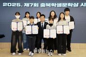 (원투원뉴스) 충청북도교육청 직속기관 교육도서관은 20일 오전, 도서관 지하 1층 다목적강당에서 제7회 충북학생문학상 시상식을 개최했다. 이날 시상식에는 수상 학생과 학부모, 지도 작가를 비롯해 윤건영 교육감 등 관계자 100여 명이 참석해 학생들의 성취를 함께 축하했다. 충북학생문학상은 지역 등단 작가의 지도를 연계한 충북형 문학상으로, 문학적 소질을 지닌 학생을 발굴하고 창작 역량을 키우기 위해 매년 운영되고 있다. 참가 학생들은 3월 등록을 시작으로 4월부터 10월까지 지역 작가의 대면 지도를 받으며 문학과 글쓰기를 배웠고, 이후 작품 공모와 심사를 거쳐 수상작이 선정됐다. 올해는 시‧소설‧수필‧동화‧독후감‧생활글 등 6개 분야에서 총 36명의 수상자가 선정됐으며, 대상은 중앙초등학교 6학년 임규림 학생의 동화 '지구의 마지막 사람들'이 차지했다. 대상작 '지구의 마지막 사람들'은 3025년, 심각한 환경 오염으로 인류가 달과 화성으로 떠난 이후의 지구를 배경으로 주인공 라리엇은 아버지를 기다리며 지구에 남아 삼촌과 함께 테라시드라는 씨앗을 틔우고, 사람이 살 수 없게 된 지구를