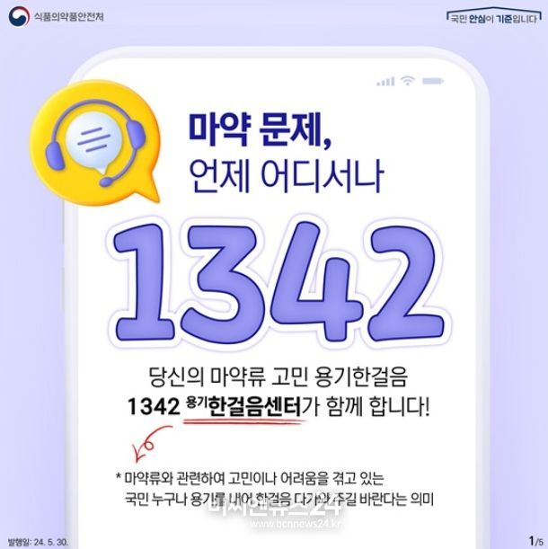 (비씨엔뉴스24) 당신의 마약류 고민 용기한걸음 ‘1342 용기한걸음센터*’가 함께 합니다!