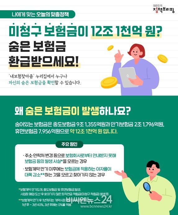 (비씨엔뉴스24) 혹시 내 돈도? ‘내보험찾아줌’ 누리집에서 누구나 자신의 숨은 보험금을 확인할 수 있습니다.