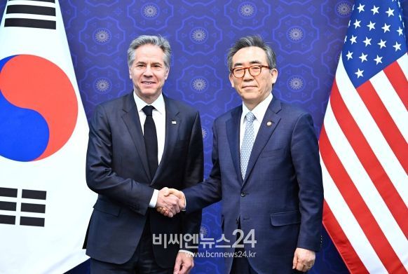 (비씨엔뉴스24) 조태열 외교부 장관은 3월18일 제3차 민주주의 정상회의 장관급 회의 참석을 위해 4개월 만에 다시 방한한 안토니 블링컨(Antony J. Blinken) 국무장관과 오찬을 겸한 회담을 갖고 자유·민주주의 협력, 북핵·북한 문제, 지역·글로벌 이슈 등에 대해 심도있고 전략적인 논의를 했다.