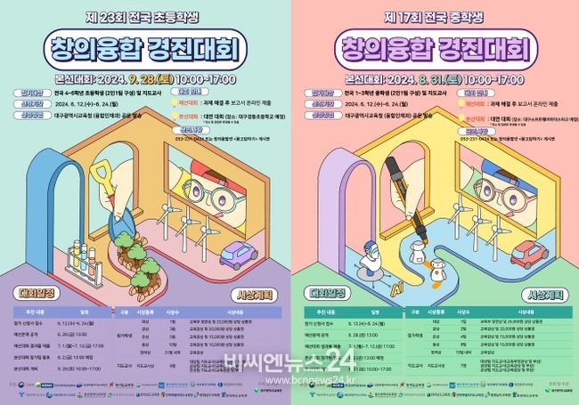 (비씨엔뉴스24) 대구시교육청은 창의적 사고력과 문제해결능력을 키울 수 있는 기회를 제공하고, 창의력이 우수한 학생들을 조기에 발굴하기 위해 전국 초․중학생 창의융합 경진대회를 개최한다.