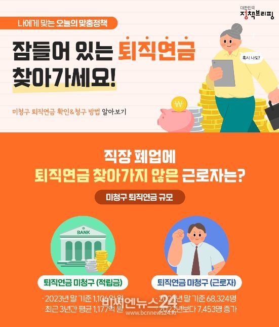 (비씨엔뉴스24) 직장이 폐업하여 다니던 회사를 그만두게 되어 미처 퇴직금을 청구하지 못한 근로자분들이 있으실 텐데요. 이 경우 나의 미청구 퇴직연금을 확인하고, 청구할 수 있는 방법에 대해 알아보겠습니다.