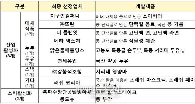 (비씨엔뉴스24) 농림축산식품부는 2024년 ‘국산 두류 제품화 패키지 지원사업’에 참여할 식품업체와 외식업체 10개소를 선정했다고 밝혔다.