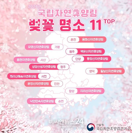 (비씨엔뉴스24) 산림청 국립자연휴양림관리소(소장 김명종)는 19일 벚꽃 개화 시기가 가까워짐에 따라 국립자연휴양림 벚꽃 명소를 소개했다.