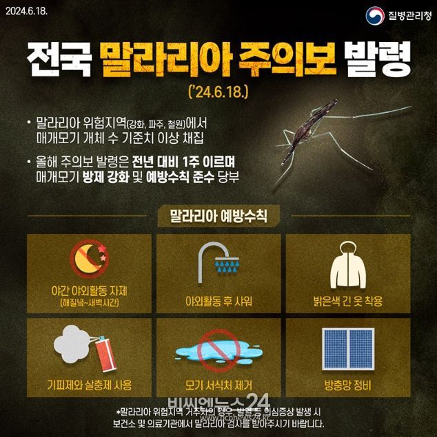 (비씨엔뉴스24) - 전국 ‘말라리아 주의보’ 발령(’24.6.18.~)