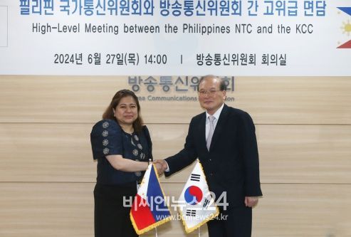 (비씨엔뉴스24) 방송통신위원회 이상인 부위원장은 6월 27일, 필리핀 국가통신위원회*(National Telecommunications Commission, ‘NTC’) 엘라 블랑카 바실란 로페즈 위원, 데니스 앤소니 위 디지털전환 대통령 특사, 테레사 디존 데 베가 주한 필리핀 대사 등과 면담을 진행했다.