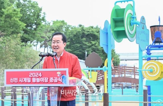 (비씨엔뉴스24) 대구광역시는 7월 1일 오후 3시, 신천 대봉교 좌안 상류 둔치에서 홍준표 대구광역시장, 이만규 시의회의장, 강은희 시교육감, 조재구 남구청장, 관련 유관기관장, 공사관계자, 주민 등이 참석해 ‘신천 사계절 물놀이장 조성공사’의 준공식을 성황리에 개최했다.