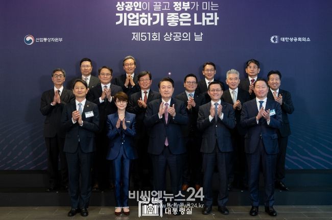 (비씨엔뉴스24) 윤석열 대통령은 3월 20일 오후 서울 여의도 63컨벤션센터에서 개최된 ‘제51회 상공의 날 기념식’ 행사에 참석해 우리나라 경제발전의 주역인 20만 상공인들의 노고를 격려했다.