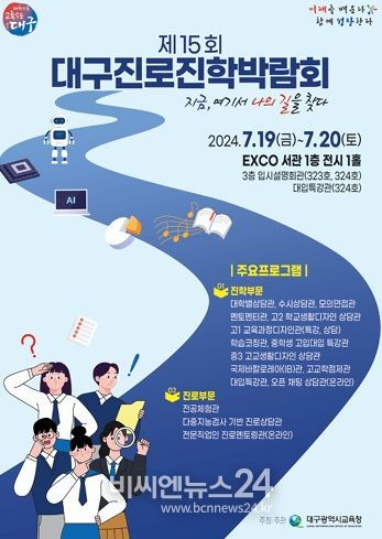 (비씨엔뉴스24) 대구시교육청은 ‘지금, 여기서 나의 길을 찾다!’라는 주제로 오는 7월 19일부터 20일까지 대구 EXCO 서관 1층 전시 1홀 및 3층 입시설명회관(323호)·대입특강관(324호)에서 ‘제15회 대구 진로진학박람회’를 개최한다.