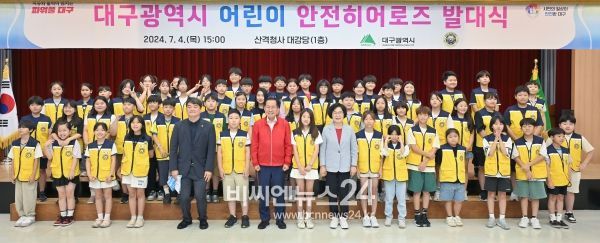 (비씨엔뉴스24) 대구광역시는 어린이의 눈높이에서 학교 주변 위험신고 등 어린이가 스스로 안전문화 활동에 참여하도록 유도하기 위해 ‘어린이 안전히어로즈’를 결성하고, 7월 4일 오후 3시 산격청사 1층 대강당에서 발대식을 개최했다.
