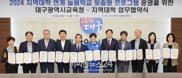 (비씨엔뉴스24) 대구시교육청은 7월 8일 16:30, 시교육청 여민실(동관 3층)에서 지역대학 10곳과 늘봄학교 맞춤형 프로그램 운영을 위한 업무협약을 체결했다.