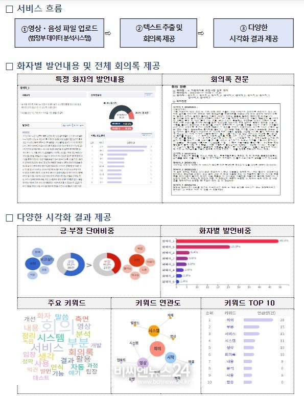 (비씨엔뉴스24) AI가 회의분위기까지 표현하여 회의록을 자동으로 작성해주고, 이미지에서 원하는 문자를 추출하여 보고서 작성 등에 활용할 수 있도록 돕는 인공지능 기반 업무지원 서비스가 행정현장에 도입된다.