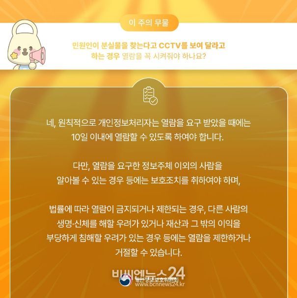 혹시 소지품을 분실해서 기관이 설치·운영하고 있는 CCTV의 열람을 요구하신 경험 있으신가요?