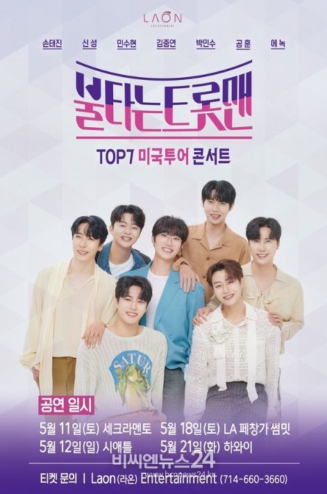 한편 '불타는 트롯맨' TOP7은 현재 MBN '불타는 장미단'을 비롯한 방송과 콘텐츠에서 활약 중이며, 미국 투어 콘서트와 관련된 자세한 사항은 공식 SNS를 통해 확인 가능하다.