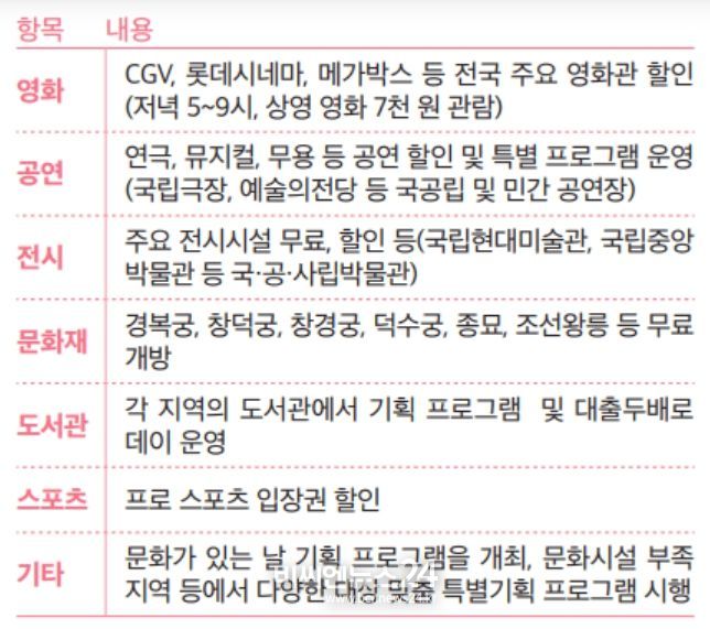 (비씨엔뉴스24) 전국 주요 문화시설 무료 및 할인 서비스가 문화가 있는 날(매달 마지막 수요일)에 제공됩니다.