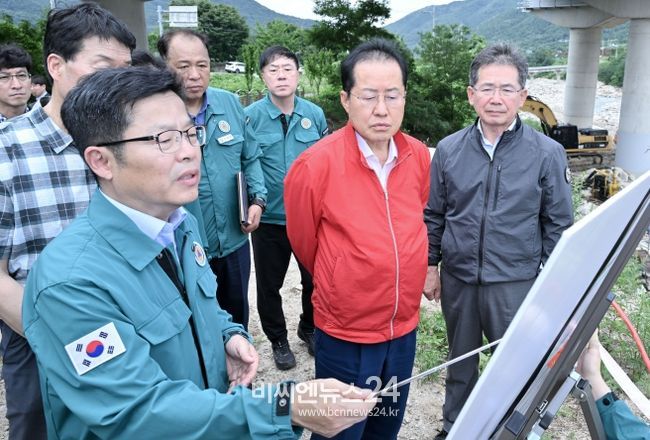 (비씨엔뉴스24) 홍준표 대구광역시장은 7월 17일 오후, 군위군 부계면 대율리 지방하천 수해 복구현장을 방문했다.