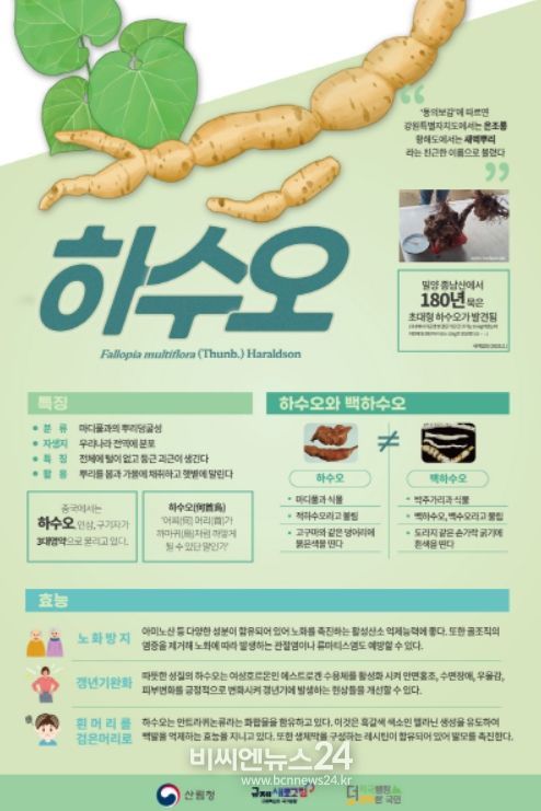 임상섭 산림청장은 “하수오는 오랜 전통과 현대과학에서 약효가 입증된 임산물이다” 라며, “면역력 강화부터 모발건강까지 하수오의 다채로운 효능을 경험해 보시길 바란다”고 말했다.