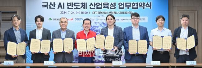(비씨엔뉴스24) 대구광역시는 7월 24일 오후 3시 대구시청 산격청사에서 국내 AI반도체 시장을 선도하는 대표기업들과 ‘국산 AI반도체 산업육성 및 대구시 반도체 산업역량 강화’를 위한 업무협약을 체결했다.