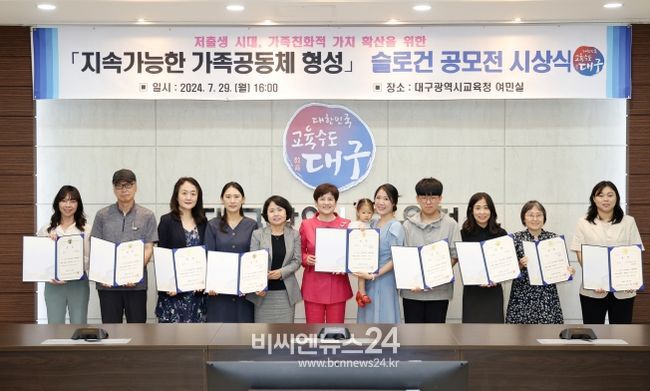 (비씨엔뉴스24) 대구시교육청은 7월 29일 오후 4시, 시교육청 여민실에서‘지속가능한 가족공동체 형성 슬로건 공모전’ 수상작에 대한 시상식을 개최한다고 밝혔다.