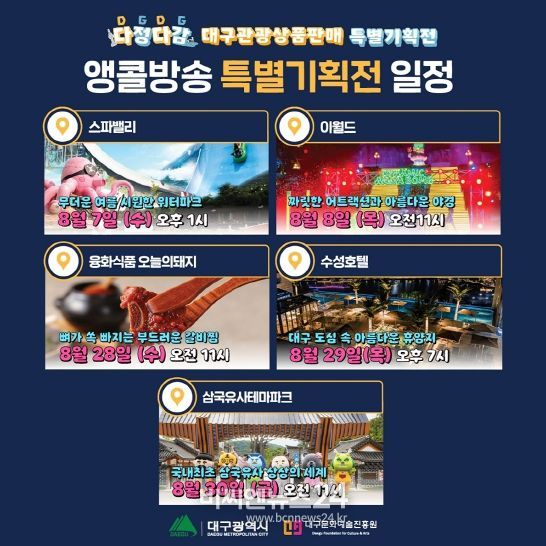 기획전 방송은 네이버 쇼핑라이브 온라인 채널을 통해 만나볼 수 있으며, 자세한 내용은 대구관광라이브커머스 공식 인스타 계정에서 확인할 수 있다.