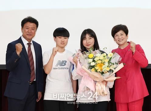 (비씨엔뉴스24) 대구시교육청은 8월 12일 오전 9시부터 대구체육고등학교 필승관에서, 2024 파리올림픽에 출전해 최연소로 한국 역대 하계 올림픽 금메달의 주인공이 된 반효진 선수(대구체고 2학년)를 축하하고 격려하는 환영회를 개최했다.