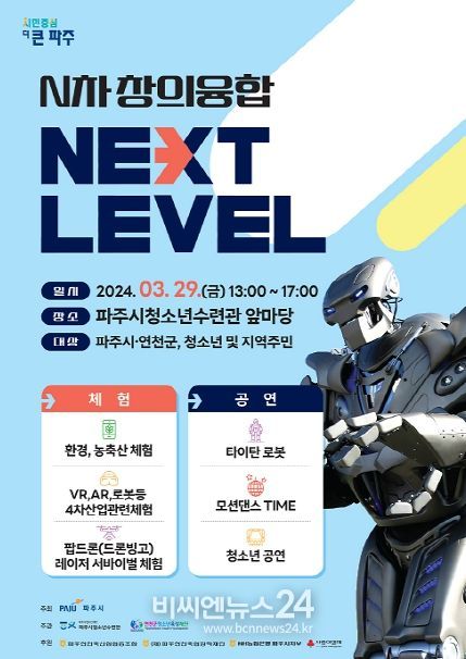 (비씨엔뉴스24) 파주시는 오는 29일 파주시청소년수련관 앞마당에서 ‘엔(N)차 창의융합 넥스트 레벨(Next Level)’ 축제를 개최한다.