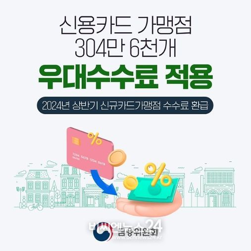 신용카드 가맹점 304만 6천개에 우대수수료를 적용하고 2024년 상반기 신규카드가맹점에 대한 수수료 환급을 진행합니다.