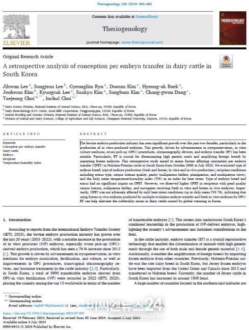 이번 연구 결과는 국제학술지 ‘국제수의산과학회지(Theriogenology)’ 2024년 9월호에 게재될 예정이다.