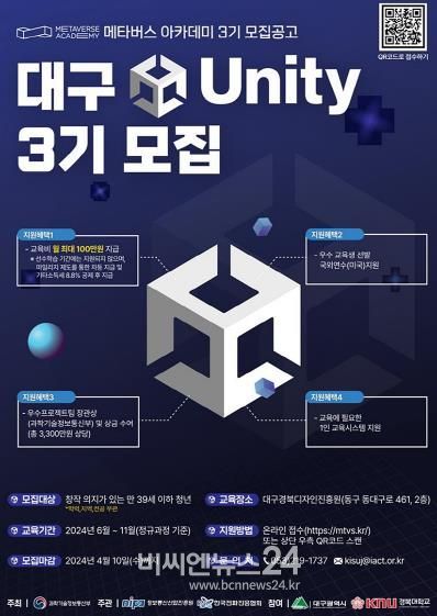 (비씨엔뉴스24) 대구광역시와 경북대학교는 메타버스 분야에서 창작 의지와 열정을 가진 청년들이 미래의 메타버스 산업을 이끌 전문가로 성장할 수 있도록 지원하는 ‘대구 메타버스 아카데미’ 3기 교육생을 4월 10일까지 공개 모집한다.