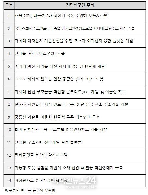 (비씨엔뉴스24) 과학기술정보통신부와 국가과학기술연구회(이사장 김복철, NST)는 ‘글로벌 TOP 전략연구단 지원사업’ 제안서 평가 결과 총 14개의 제안서가 선정됐으며, 해당 제안 임무에 대한 심층 평가 및 컨설팅을 수행하기 위해 3.26.(화) 연구개발계획서 공고를 실시한다고 밝혔다.