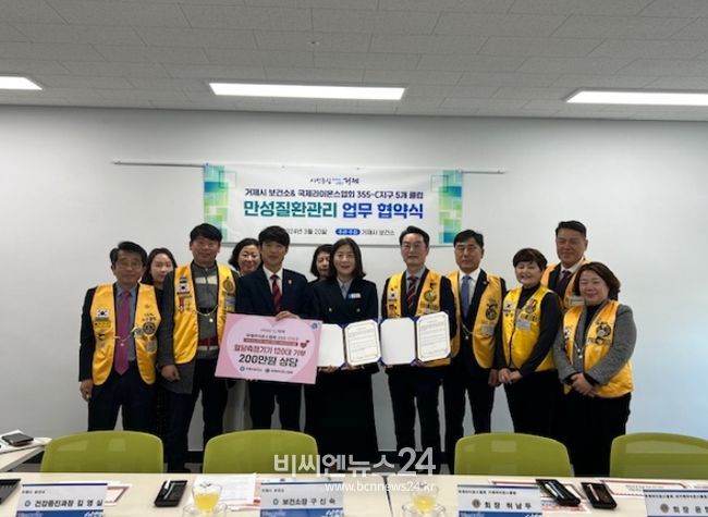 (비씨엔뉴스24) 지난 20일 거제시보건소와 국제라이온스협회 355-C지구 5개클럽(거제·새거제·거제송죽·거제중앙·거제모아라이온스클럽)은 거제시민의 만성질환관리를 협업하기 위한 업무협약식을 가졌다고 26일 전했다.