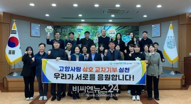 김미령 나주시 세무과장은 “담양군 한연덕 기획예산실장과의 오랜 인연을 계기로 교차 기부에 동참했다”며 “앞으로도 양 기관의 부서 간 상호기부가 이어져 지역경제 활성화에 보탬이 되길 바란다”고 말했다.