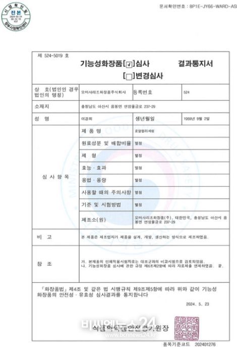 식품의약품안전처는 적정성을 검토한 후 심사를 거쳐 지난 5월 23일 로열젤리 함유 화장품을 피부 주름 개선 기능성화장품에 등록했다.