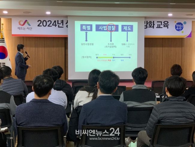 (비씨엔뉴스24) 충남 서산시가 26일 시청 중회의실에서 특별사법경찰 40여 명을 대상으로 직무 역량강화 교육을 실시했다고 밝혔다.