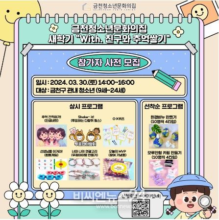(비씨엔뉴스24) 금천구는 오는 30일 14시에 금천청소년문화의집에서 청소년을 위한 파티를 개최한다고 밝혔다.