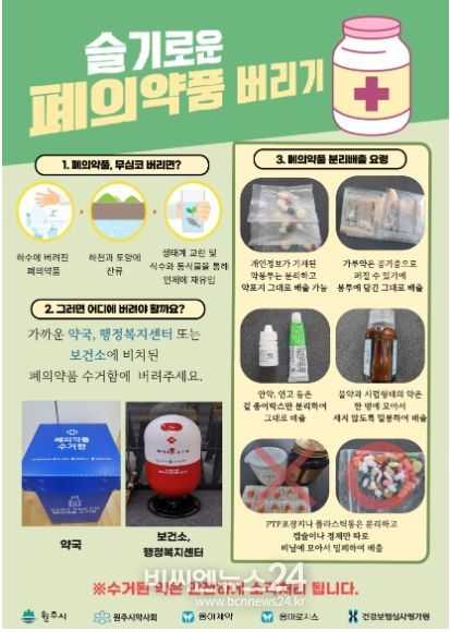 (비씨엔뉴스24) 원주시 가정에서 발생하는 폐의약품 수거량이 전년 대비 48% 증가했다.