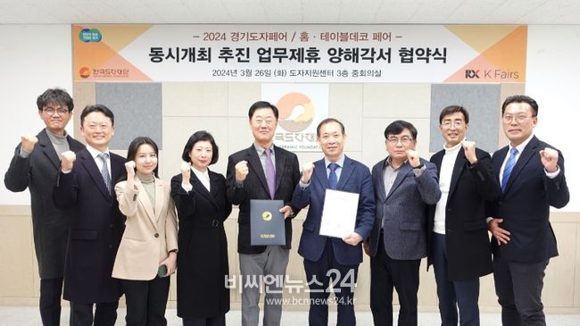 (비씨엔뉴스24) 한국도자재단과 전시 전문 기업 리드케이훼어스 유한회사는 26일 한국도자재단 이천 도자지원센터에서 ‘2024 경기도자페어와 홈·테이블데코페어의 성공적인 동시 개최’를 위한 업무협약을 체결했다.