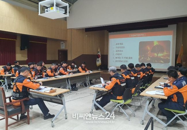 이번 훈련은 봄·가을철에 발생할 수 있는 가상 재난(산림화재)을 설정하고 ▲재난 상황부여 ▲현장 지휘대 초기 활동 ▲재난 상황 전개에 따른 메시지 발송 및 처리 ▲통제단 각 부별 기능별 대응계획 발표 ▲ 24년 긴급구조훈련 운영 및 긴급구조대응계획 변경사항 교육 ▲ 통제단 가동훈련 등의 내용으로 진행됐다.