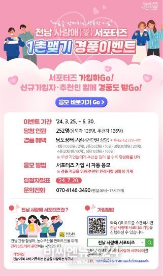 (비씨엔뉴스24) 전라남도가 6월 말까지 전남 사랑애(愛) 서포터즈 모집을 위한 1촌 맺기 이벤트를 통해 고향사랑 열풍을 이어간다.