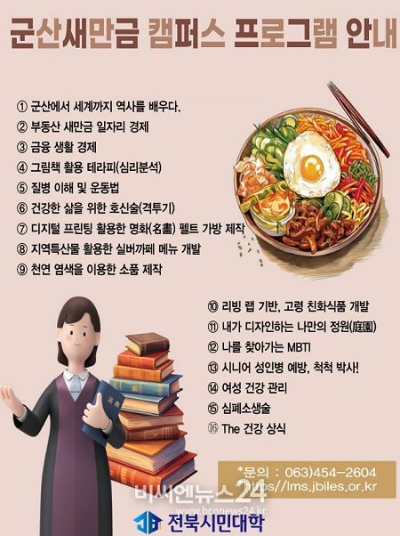 (비씨엔뉴스24) 군산시가 전북특별자치도에서 추진 중인'전북시민대학 운영사업'공모에 2년 연속 최종 선정되어, 도비 7천5백만원을 지원받는다.