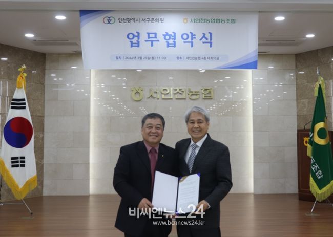 (비씨엔뉴스24) 인천광역시 서구문화원과 서인천농업협동조합은 지난 25일 서인천농협 본소에서 ‘지역문화예술 활성화 업무협약(MOU)’을 체결했다고 밝혔다.