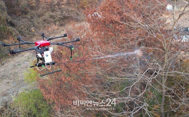 무인기 활용 말벌집 퇴치 기술은 한국농업기술진흥원에 위탁해 진행하는 ‘농업 신기술 산학협력 지원사업’이다. 무인기에 장착된 장치를 원격 조종해 말벌집에 구멍을 뚫고 내부에 방제 약제를 살포해 여왕벌과 유충을 99% 제거하는 방식이다. 한국농수산대학교 홍순중 교수팀과 협력해 전국 8개 도 농업기술원에서 현장 실증 중이다.