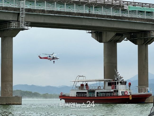 주요훈련 내용은 ▲소방헬기 호이스트를 이용한 수상 구조대상자 구조, ▲교량에서 로프 하강으로 유람선 접근하여 구조대상자 구조, ▲수중 드론 및 스쿠버다이버를 활용한 수중 수색 등이다.