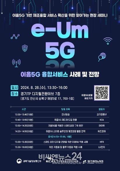 (비씨엔뉴스24) 과학기술정보통신부와 한국방송통신전파진흥원은 최근 제조, 물류 등 전 산업분야의 디지털 전환이 가속화됨에 따라, 각종 디지털 기술을 연계하는 핵심 통신 인프라인 이음5세대 이동통신이 각 산업분야에 확산, 적용될 수 있도록 ‘이음5세대 이동통신 융합서비스 사례와 전망 발표회’를 개최한다고 밝혔다.